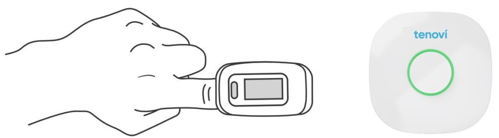 Keep your finger in the oximeter for 20 seconds or until you hear a beep from the Tenovi Gateway. Then, remove your finger and wait for Tenovi Gateway to turn GREEN.