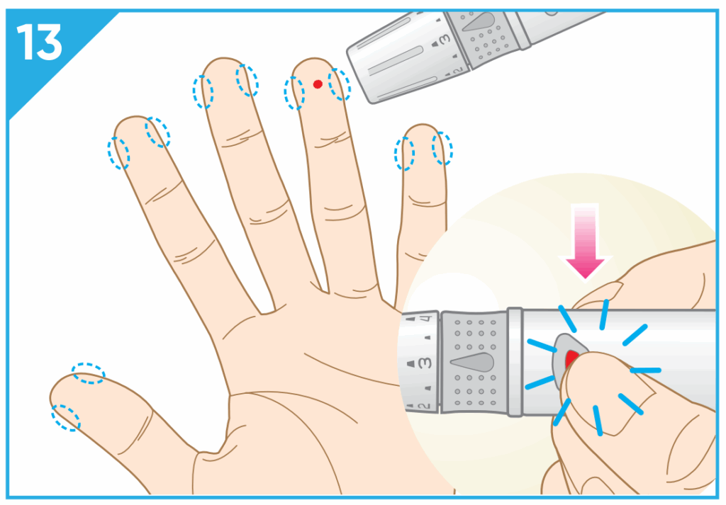 - Don’t squeeze too hard as excessive squeezing can dilute your sample with interstitial fluid, which may affect accuracy.
