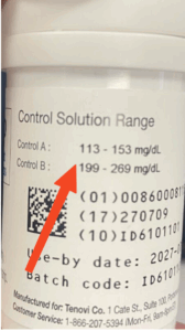- Check the test strip bottle for the expected range for your control solution. This is not located on the control solution bottle but on the container that has your test strips.