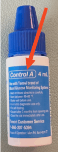 In order to ensure your glucometer is providing the most accurate results, you may use the control solution to confirm accuracy.- On the blue portion of the label of your control solution, it will state whether it is control solution type A or B.