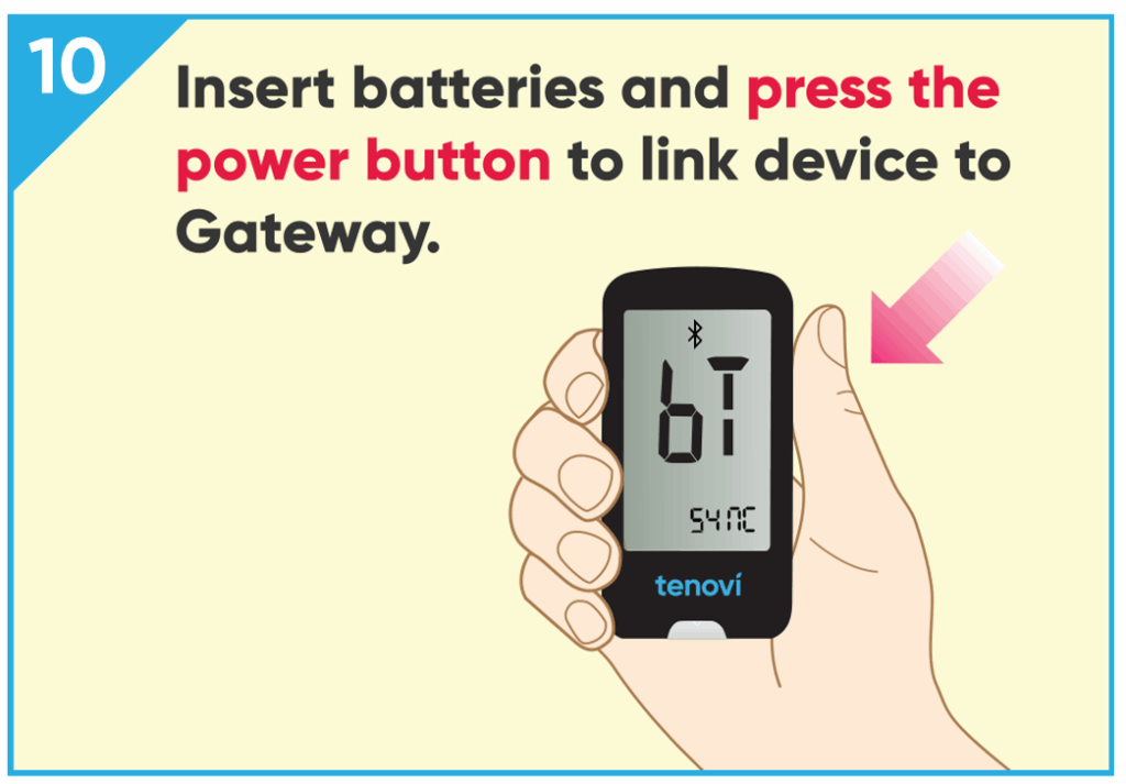 Before your measurements can be sent to your Care Provider, your Tenovi Blood Glucose Monitor must be paired to the Gateway. Please see Device Specifics for pairing steps.
