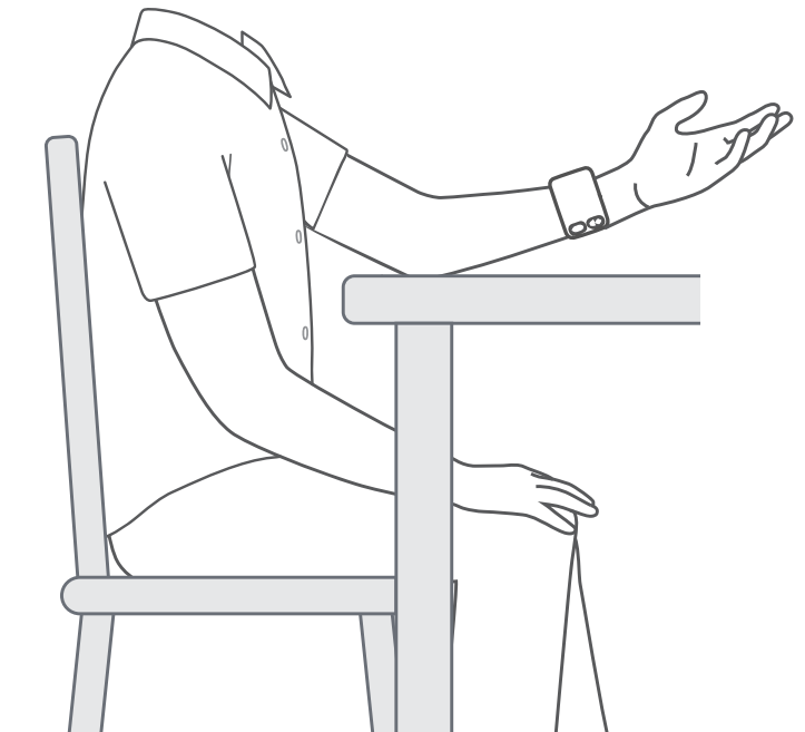 Step 5: Sit comfortably with your tested elbow resting on a flat surface and wrist at the same level as your heart. Relax your arm and hand with your palm facing upwards.